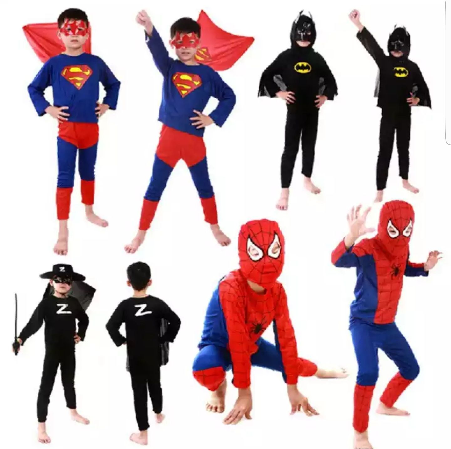 Superhero Kids Costumes (Spiderman, Superman, Batman) Discounted Price